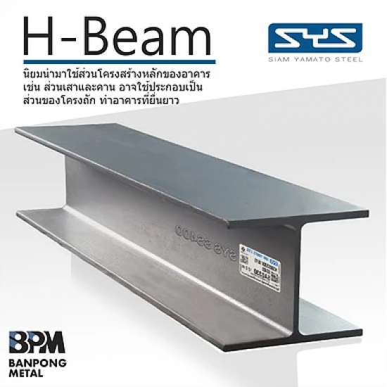 จำหน่ายเหล็กเอชบีม SYS เหล็กเอชบีม เกรด SS400 ราคาขายส่ง ไอบีมยาว 6 เมตร ขนาดหน้าตัด 100x100มิลลิเมตร., 125x125มม., 150x150มม., 175x175มิลลิเมตร., 200x200มม., 250x250มม., 300x300มม., 350x350มม., 400x400มิลลิเมตร.